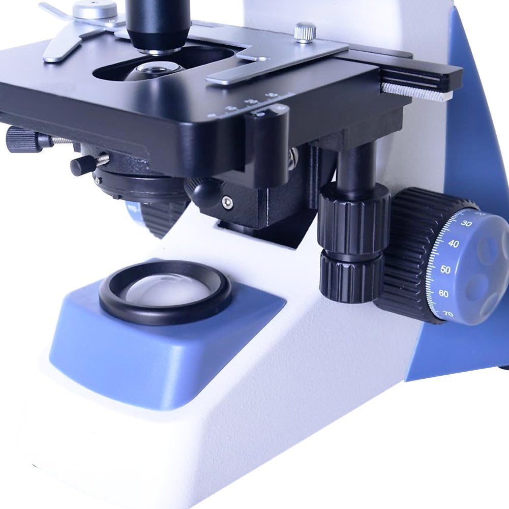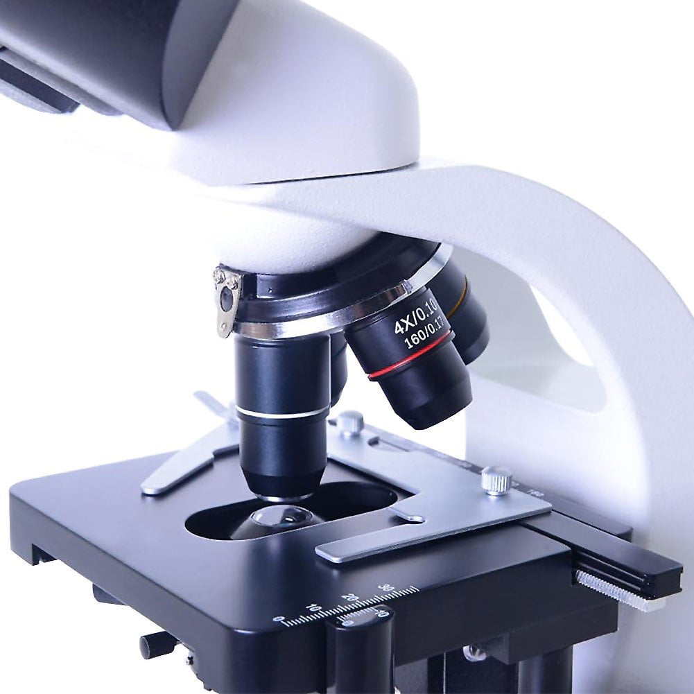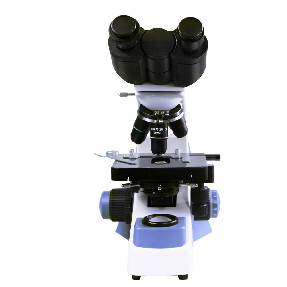 Σύγχρονο διοφθαλμικό μικροσκόπιο ιδανικό για μαθητές, με αχρωματικούς φακούς και μεγέθυνση έως 1600x, συμπυκνωτής Abbe και φωτισμός LED 1W.