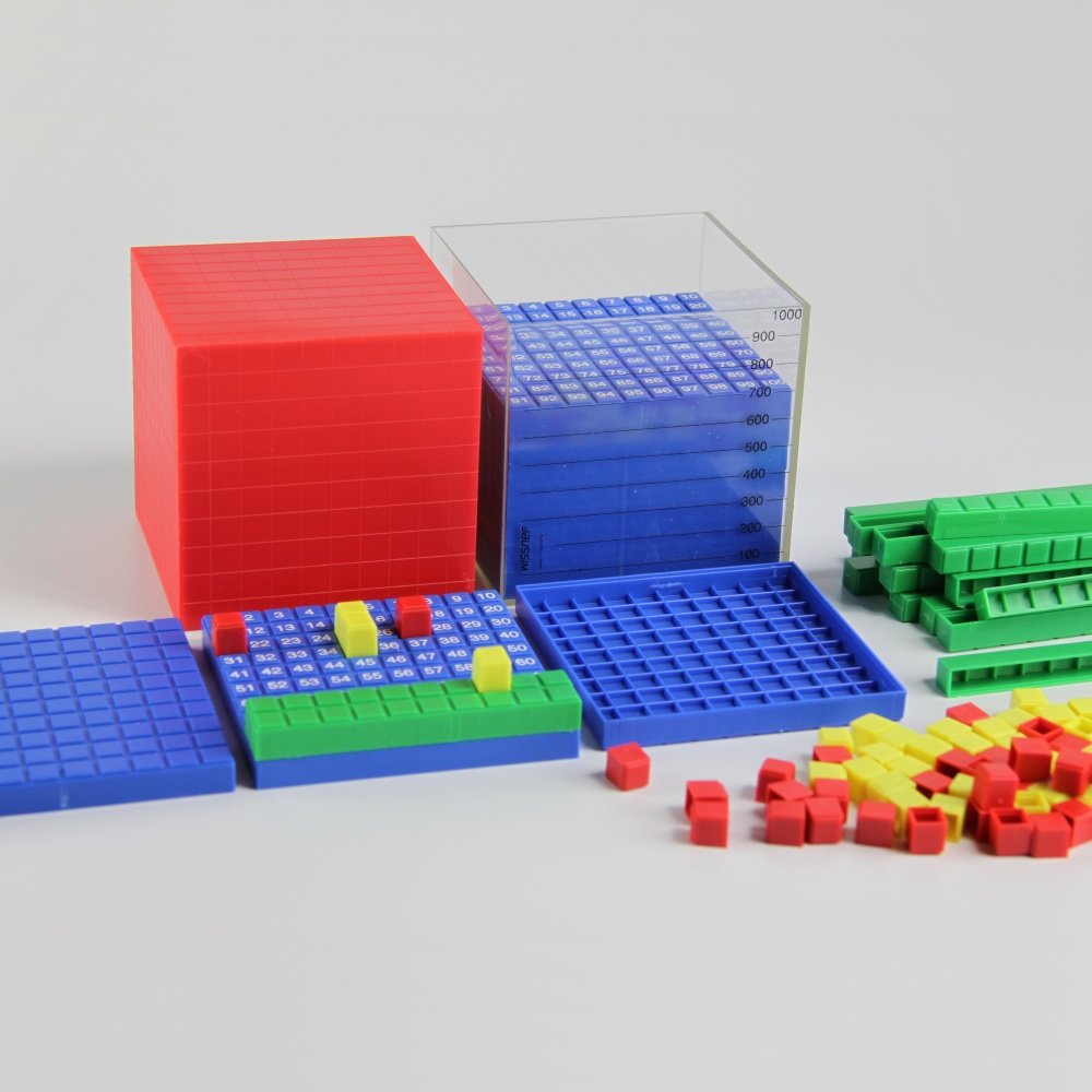 Όλα τα κομμάτια είναι αλληλοσυνδεόμενα. Τα κομμάτια που αντιστοιχούν στις δεκάδες, εκατοντάδες και χιλιάδες είναι χαραγμένα ανά 10 mm για να παρουσιάζουν τις αντιστοιχίες του δεκαδικού συστήματος. 4 χρώματα ανάλογα με μονάδες, δεκάδες, εκατοντάδες, χιλιάδες.