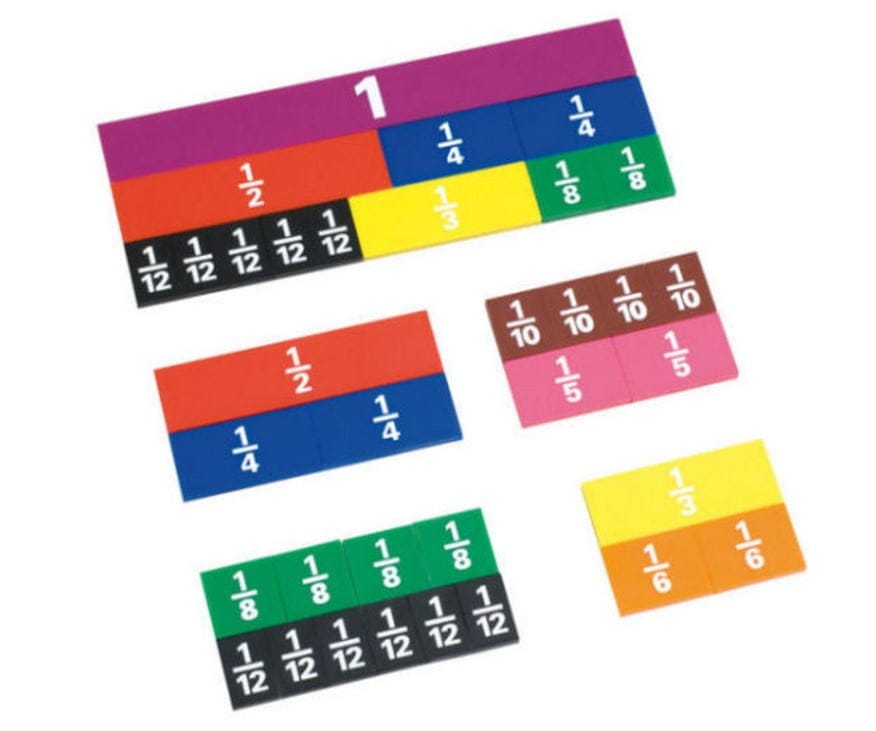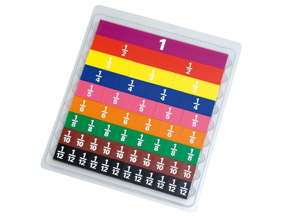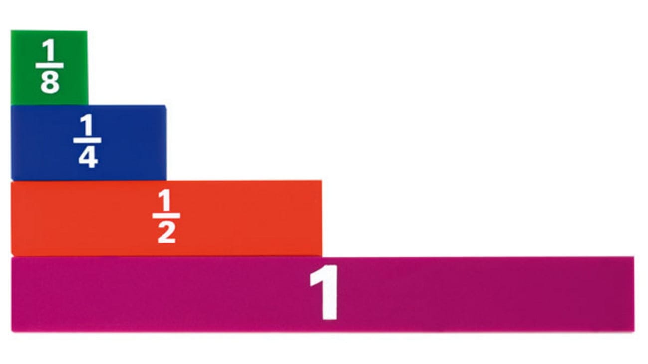 Σετ από επίπεδους ράβδους κλασμάτων με αναλογικό μέγεθος ως προς το ολόκληρο τη μονάδα.