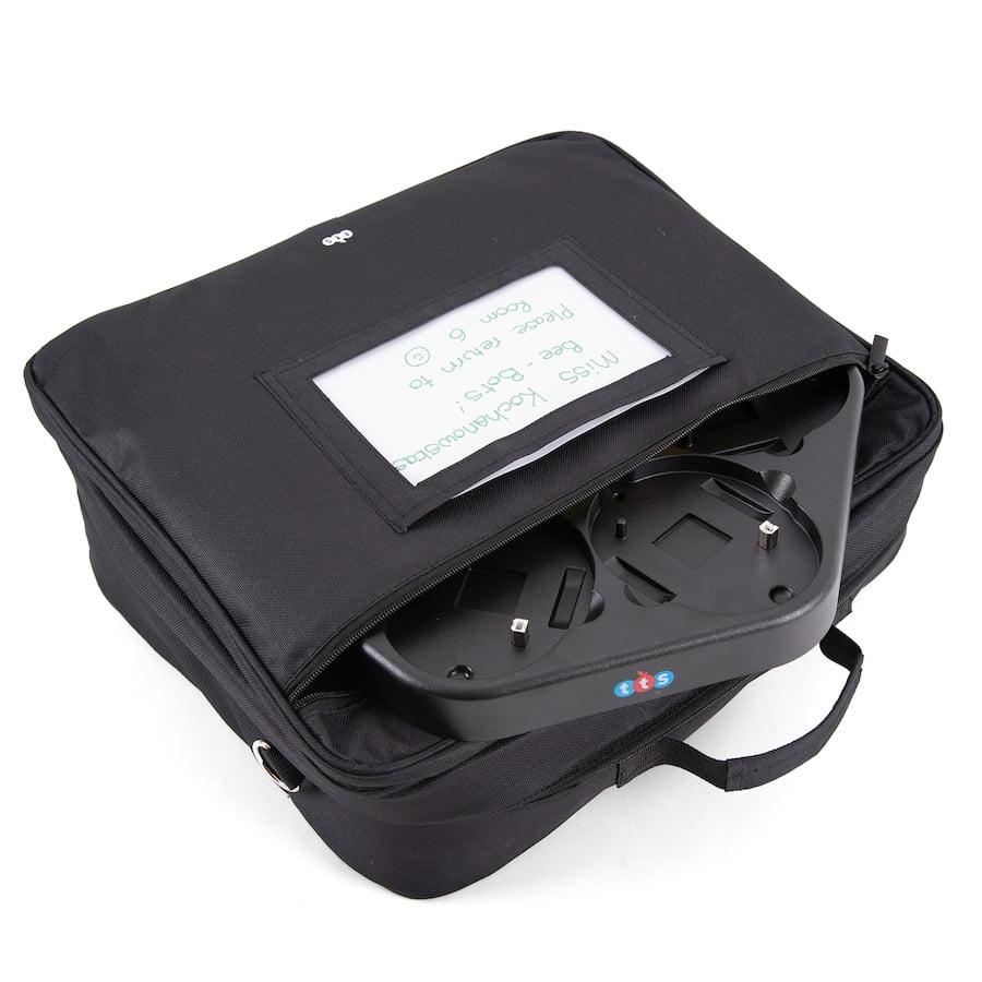 Η τσάντα μπορεί να μεταφερθεί είτε με τη λαβή αρπάγης είτε με αποσπώμενο ιμάντα ώμου. Μια μικρή θήκη στο μπροστινό μέρος της τσάντας επιτρέπει την εύκολη αναγνώριση του σετ κατηγορίας σας.