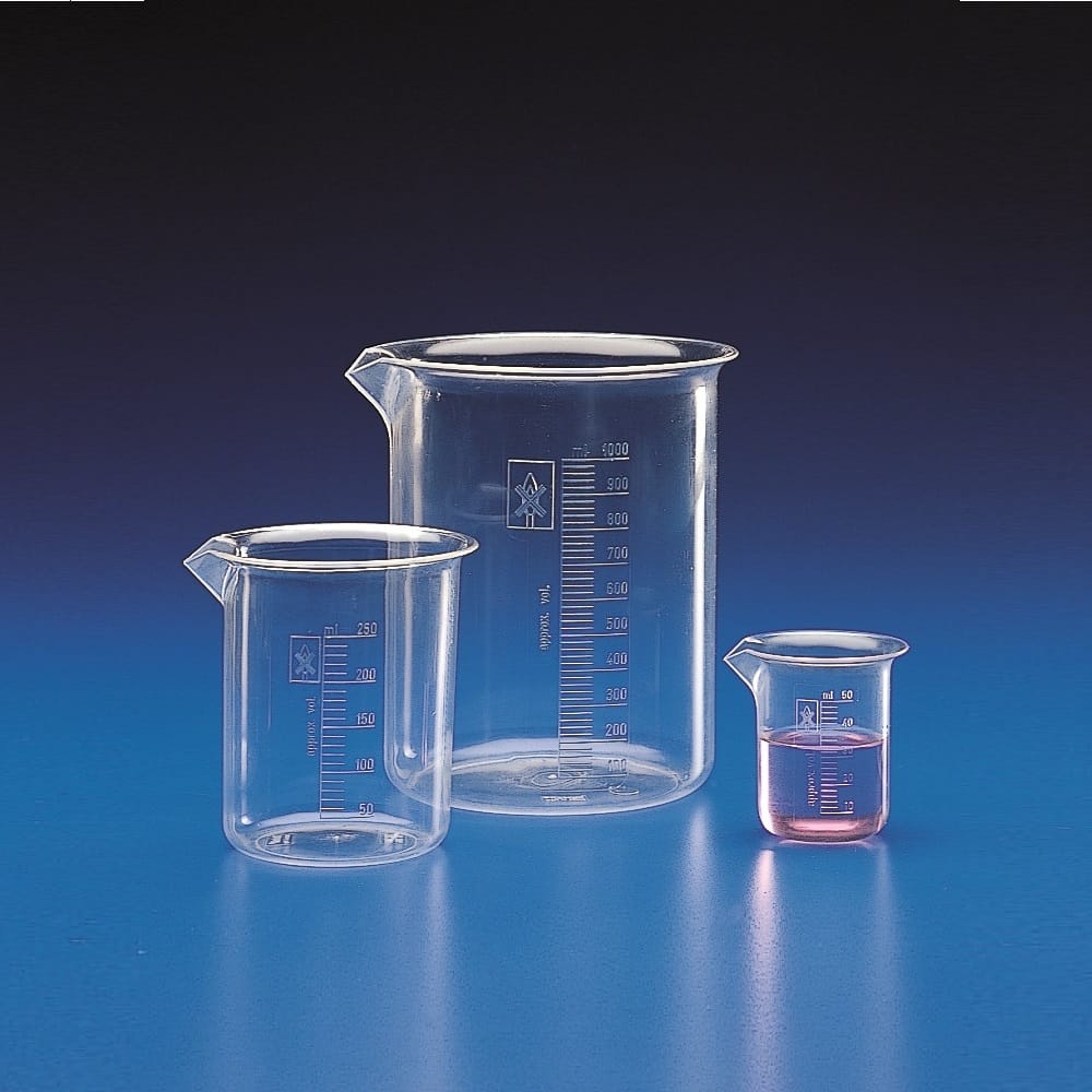 Γενικής χρήσης Πλαστικό Ποτήρι Ζέσης Διάφανο PMP που χρησιμεύει σε συνήθεις χημικές εργασίες όπως στη λήψη, διατήρηση και μεταφορά ορισμένου όγκου υγρού, κτλ.