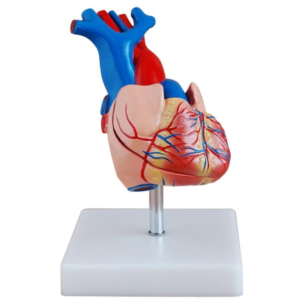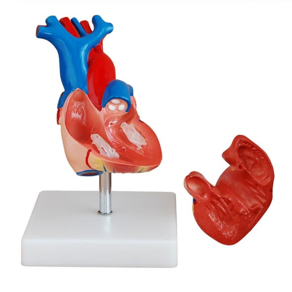 The anterior heart wall can be removed to show the left and right ventricles and atria as well as the tricuspid, pulmonary, mitral and aortic valves.