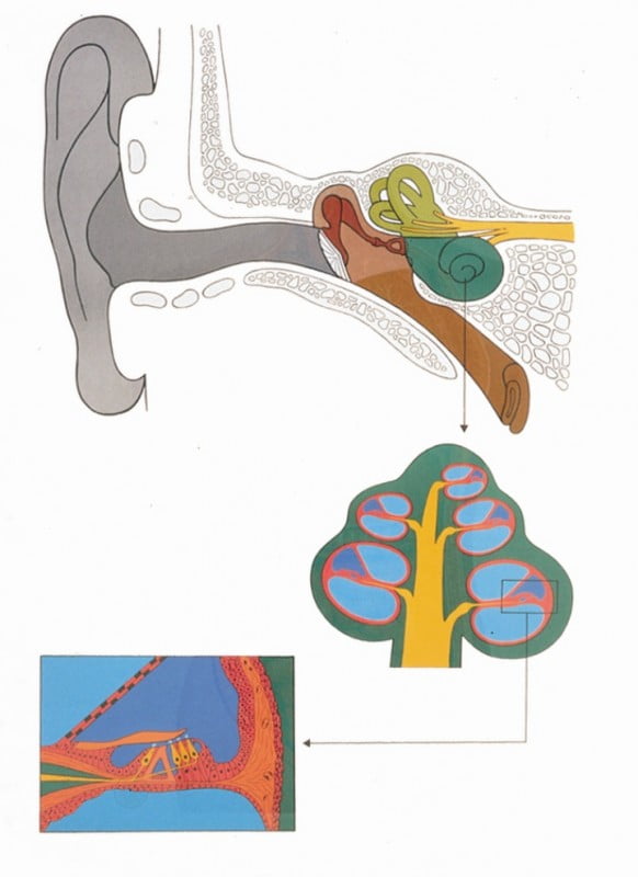 The tiny anatomy of the human ear is easy to view in study in this oversized anatomical chart. The colorful poster is a great tool for the study of the anatomical details of the human ear. The human ear chart is delivered with rods for easy display.
