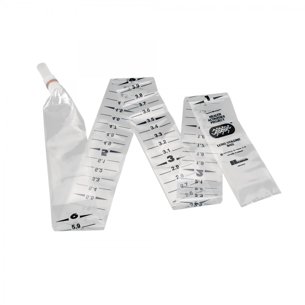 Students measure tidal volume and respiratory minute volume with the plastic bag and mouthpiece.