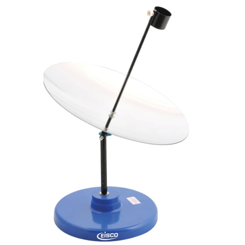 This Solar Furnace effectively showcases the transfer of energy between solar radiation and thermal energy. Ideal for physics classroom demonstrations. Light from the Sun’s rays are reflected off of a 30cm (11.8″) diameter parabolic reflector, and are focused onto a black colored copper cup.