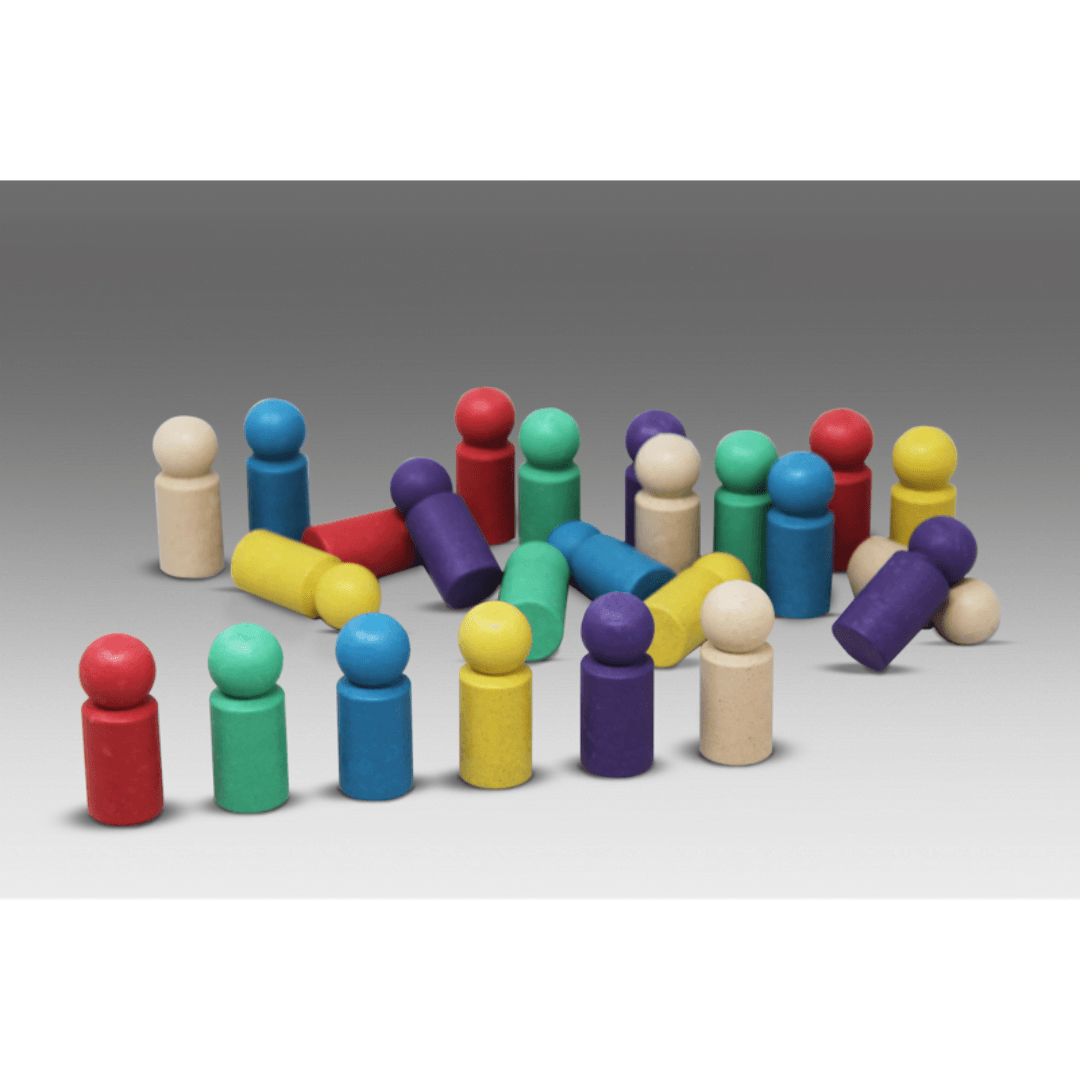 4 pieces each in red, green, blue, yellow, purple and natural colors