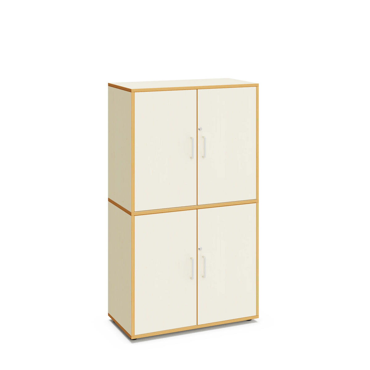 A 160 cm high school cabinet with a maple wood finish. It features four doors and interior storage spaces, ideal for equipping classrooms in educational centres.
