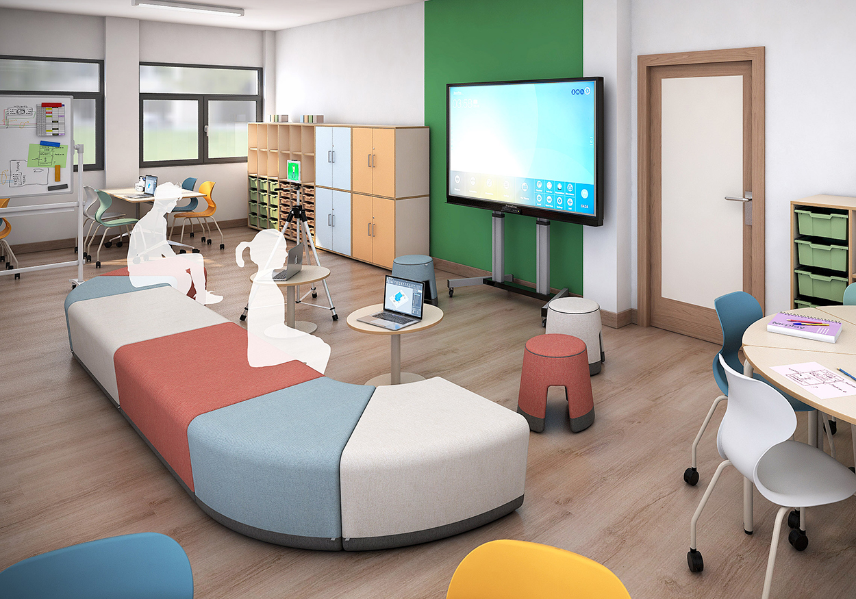 The maple-wood finish combined with the white doors adds a bright, modern aesthetic suitable for all learning environments.
