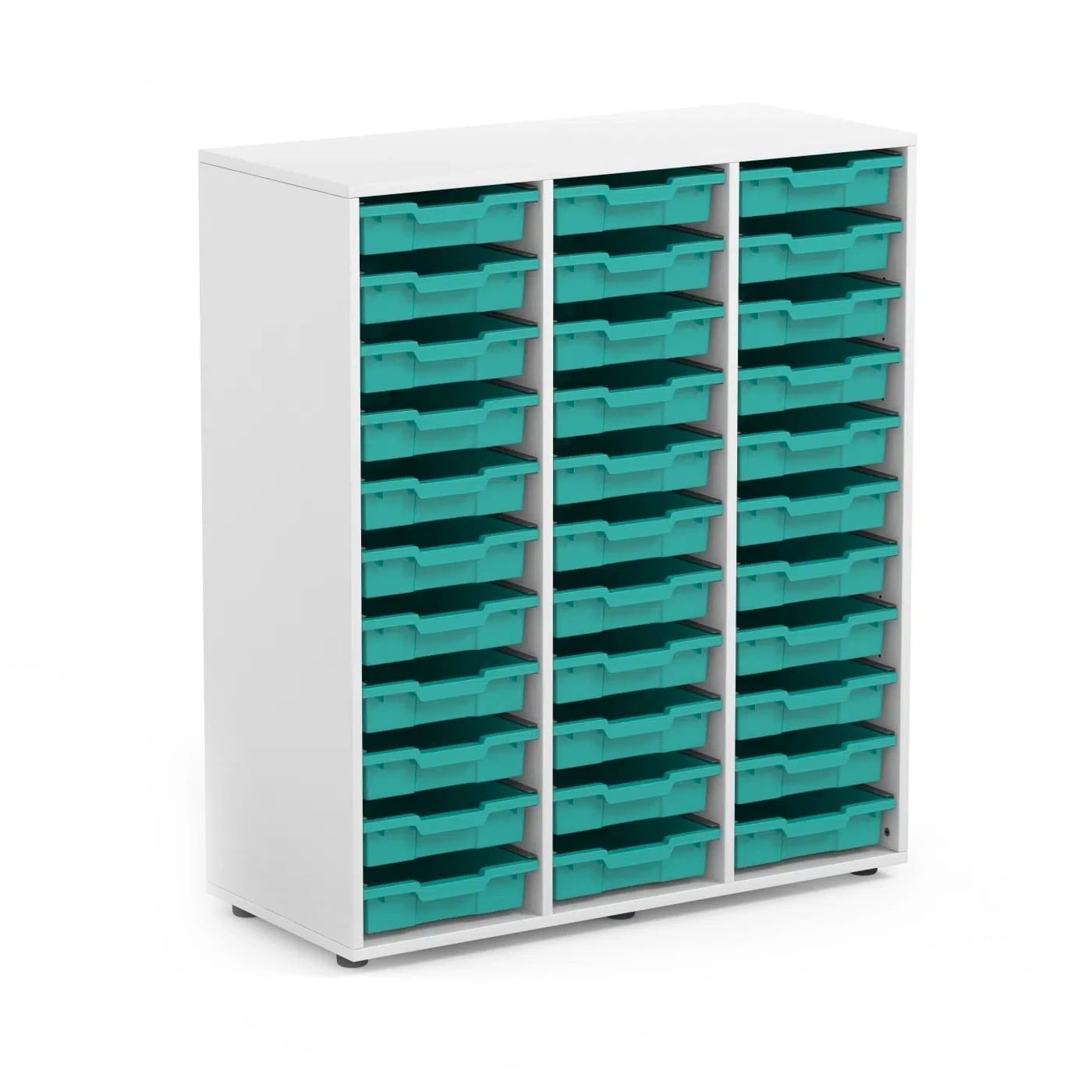 120cm high school cupboard with three columns to store 33 storage buckets. Ideal for equipping cooperative learning classes.