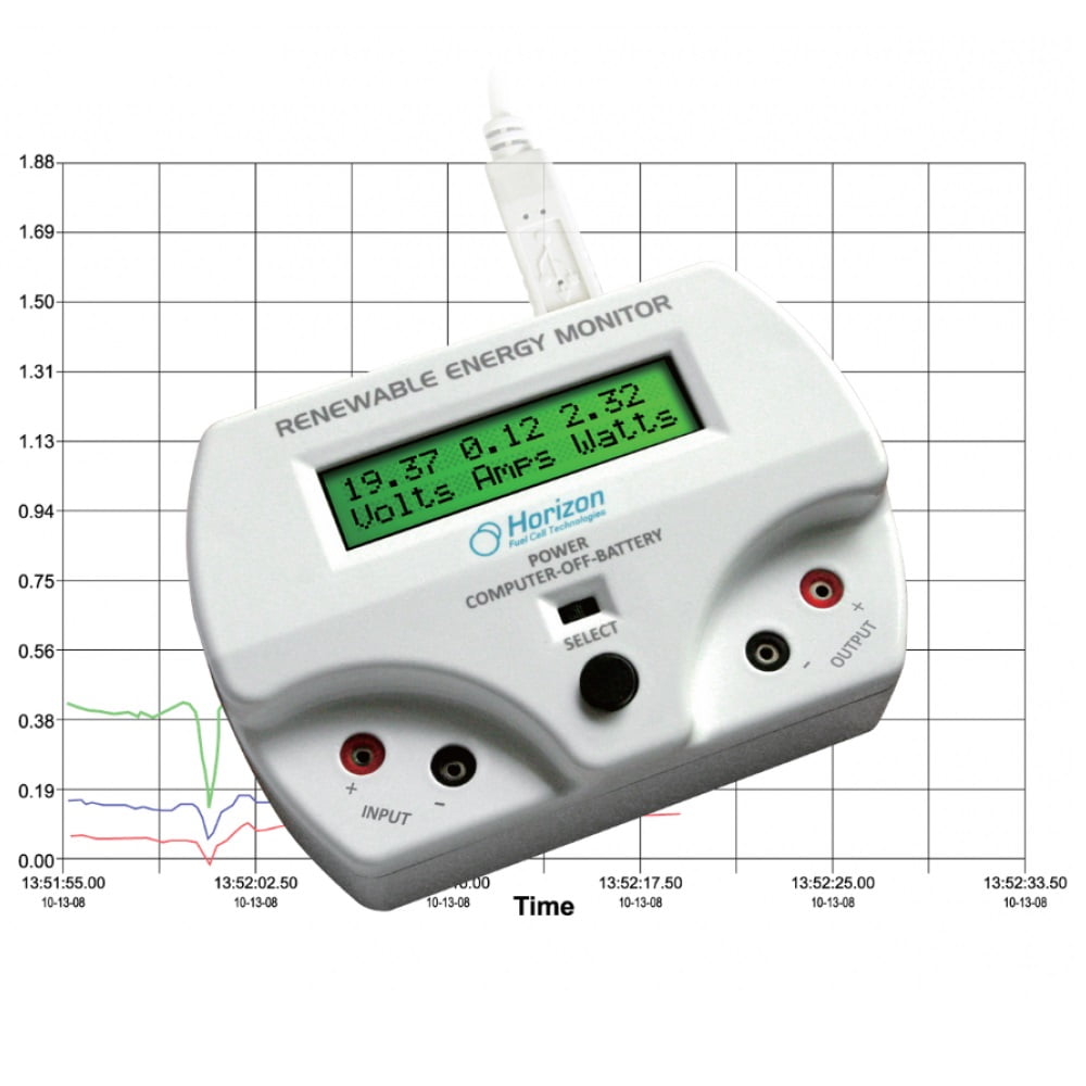 The Renewable Energy Monitor is an educational evaluation monitoring device with PC measurement software for graphical display of performance characteristics on its own 2 line LCD screen or your Windows computer. It has a 2 line LCD screen for viewing measurements that you cycle through just by pushing a button.