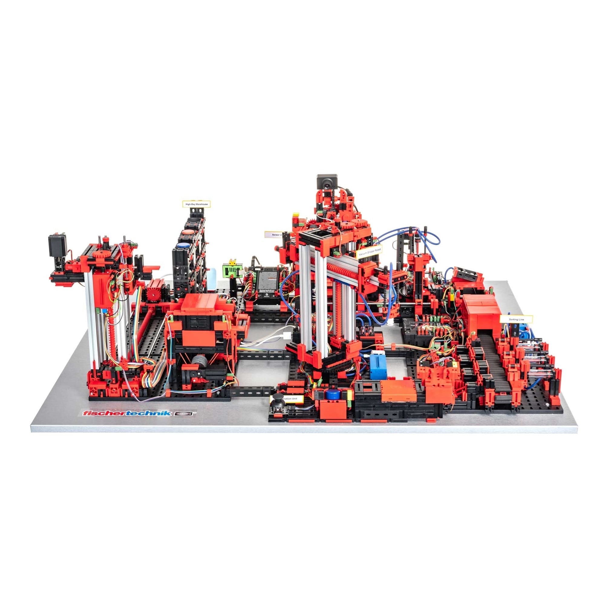 There are three different versions of the fischertechnik Training Factory Industry 4.0 24V, which differ in the scope of delivery of the controller. This variant is the “plug and play” solution. Here, the control unit is included and everything is already wired.