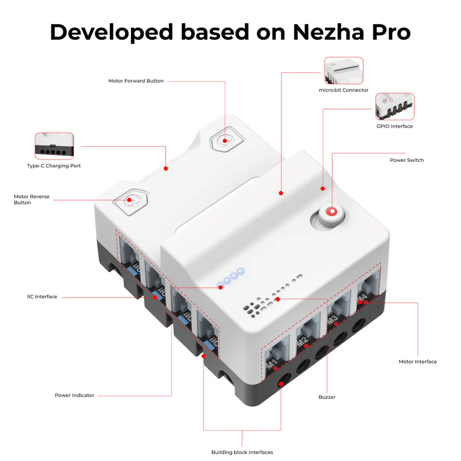 More information and educational scenarios from the manufacturing company on the following link: Nezha Pro Breakout Board(EF05070) | LEARN