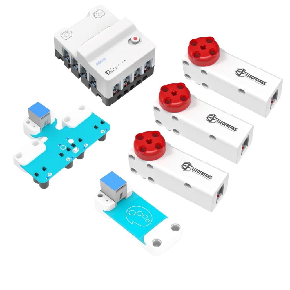 The Interactive Coding Pack contains the Trimpot module, Rainbow LED module, Gesture sensor, Colour sensor and almost 180pcs bricks, it gives kids more chances to solve problems and create projects! The over six cool projects in the WIKI bring kids with new know-how to artificial intelligence. Compatible with TPBot smart car and Nezha Inventor’s kit, it inspires kids more with the add-on functions.